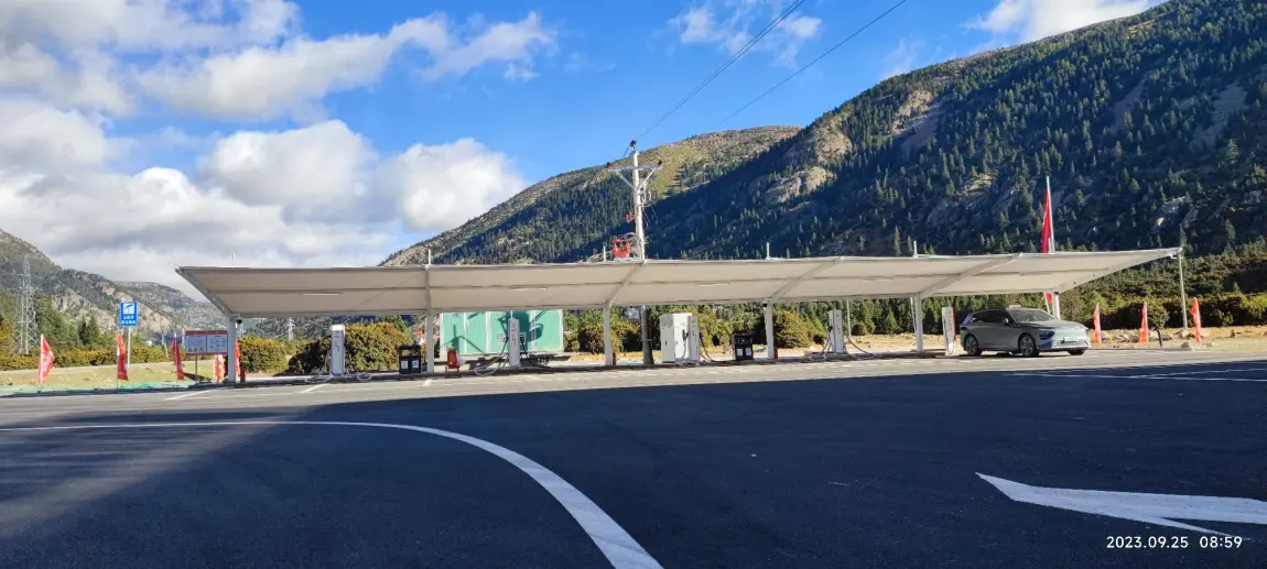 康定到稻城亚丁,中途理塘有个小鹏合作的桩,反复试了很多次也打了客服都不能正常使用,反正你花钱就能用,只好去桑堆镇鲲鹏华为超充站,也是全程唯一花钱充电的地方,是一个卡车司机之家,有热水,卫生间也非常干净。附图