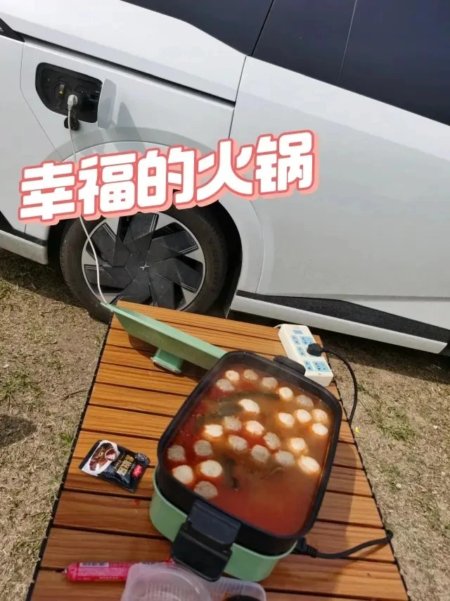 自己是个露营小白,好在家里有插电式火锅装备,配合着X9外放电功能,冬日的广东吃着火锅,烤着肉,这感觉非常nice。