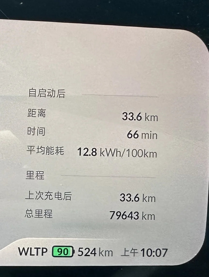 走了37.4公里,仪表盘上的WLTP还剩457公里,能耗下降到了13.7了,并且回归到了1:1续航达成率的状态。