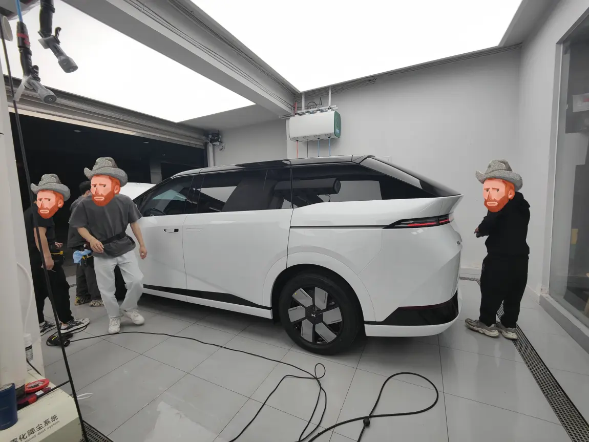 车子提回来3天了,着着急急把车牌给选定后就开始谋划改色贴膜,在网上找了很多照片,有各种不同配色,也有卡通奶爸配图,想了想卡通配图还是太过个性,不大符合我的用车场景和个性,还是低调务实一些更好,而且也不大可能会有人借我车干啥,所以还是老老实实选个好看的车衣吧,在小红书上翻到图一的黑色悬浮车顶,觉得还是挺好看的,而且总有一种眼熟,一时半会没想起来为啥。直到我的车子完工后,猛然想起和路虎极光的感觉有点像。说干就干,选好方案后,一大早就开到店里,店长立马安排两个班组从上午九点开始一直干到晚上9点半,不带休息的,真是给力,主要是想赶在清明假期前弄完,好出门去体验体验七座mpv的乐趣[害羞