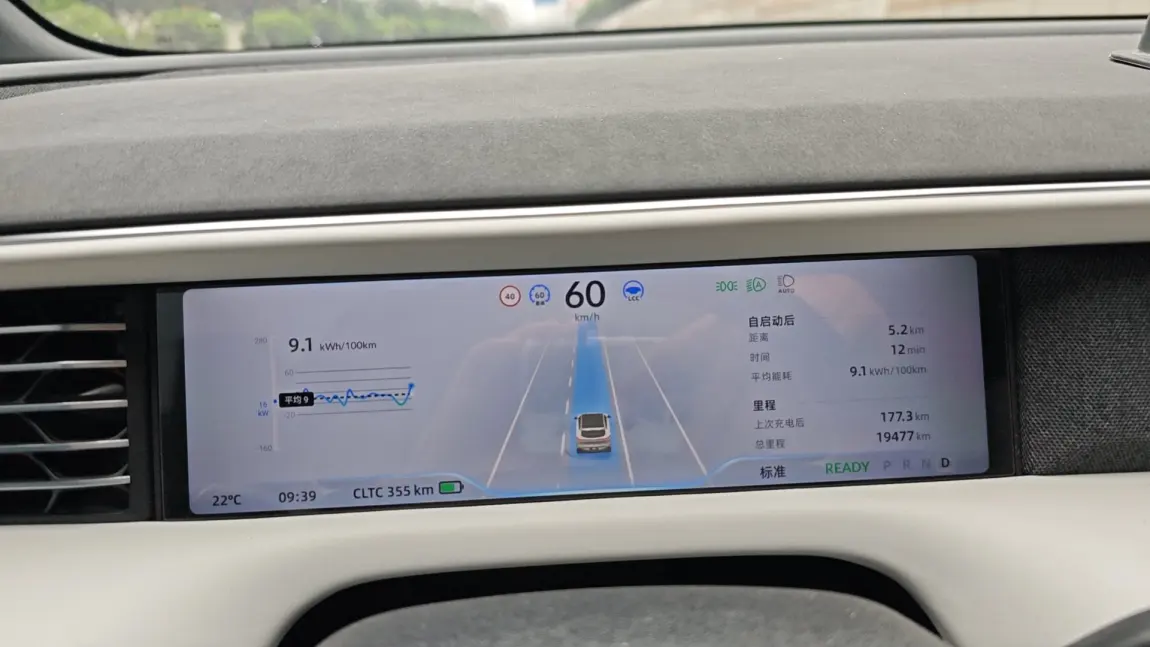 跑了大概50多公里,加上第一天的就是跑了177公里,剩余cltc显示355公里加起来就是532公里,比充满少了28,这下有意思,跑了50多公里才少了5公里的电,难道仪表盘坏了吗,哈哈哈因为天气比较凉爽,所以我只开了空调26度一档风,还有听音乐。当时我还发到我们群里,鹏友们问我怎么开这么低能耗,我说直接路段都是lcc开的,哈哈哈