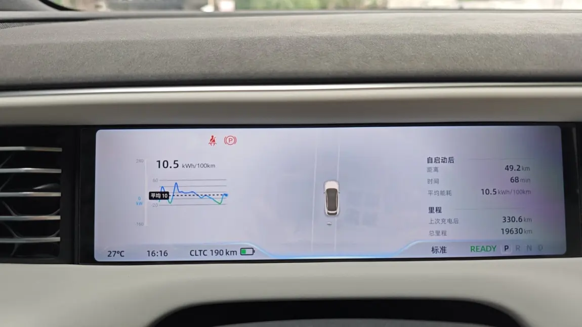 但是,随着4.4到4.6版本的升级厂家为了不断优化单踏板的舒适性,慢慢的把单踏板模式的动能回收慢慢减去,我再也没试过跑540公里的续航了,当然这也跟气温有很大关系,然后这几天气温开始回升,我充满电的时候开我发现能耗cltc没少多少,于是我又开始测试一下,反正都是每天到处跑,就顺便留意下仪表盘,