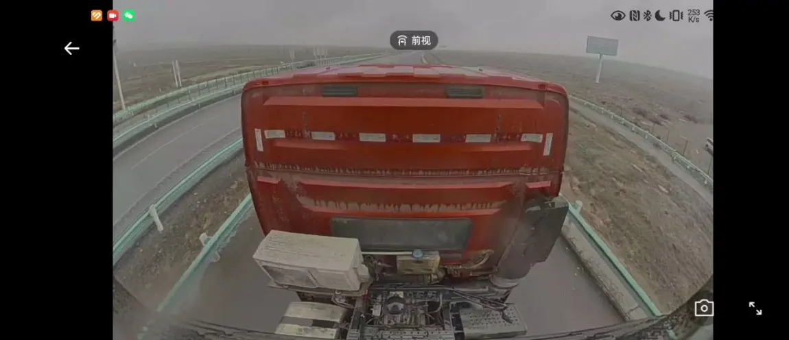 正好车子在拖车第一个,调去前摄像头看,还是蛮好玩的