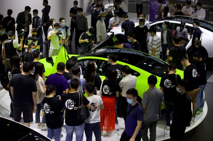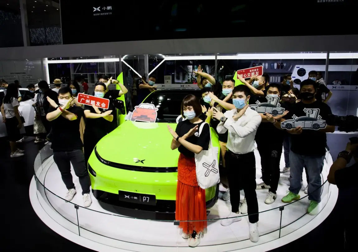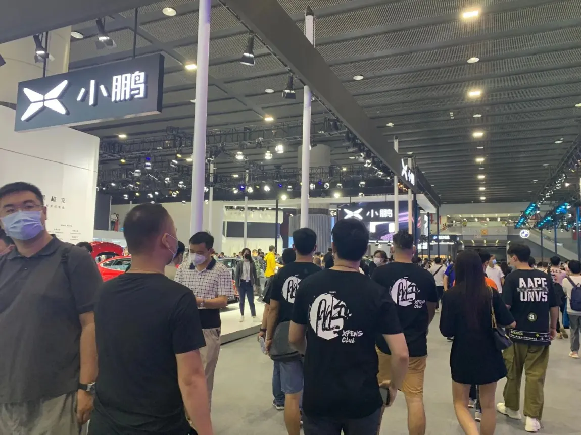 工作人员踩过点,很快就引导我们到了小鹏的展台。