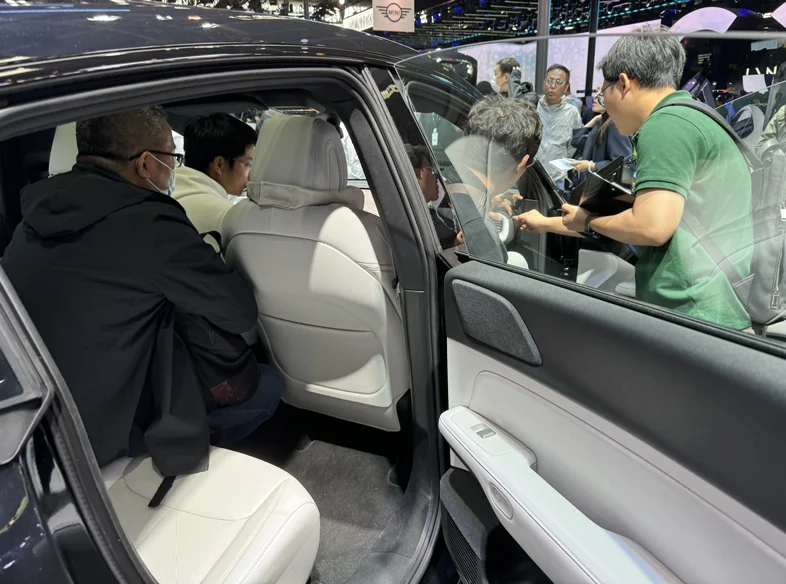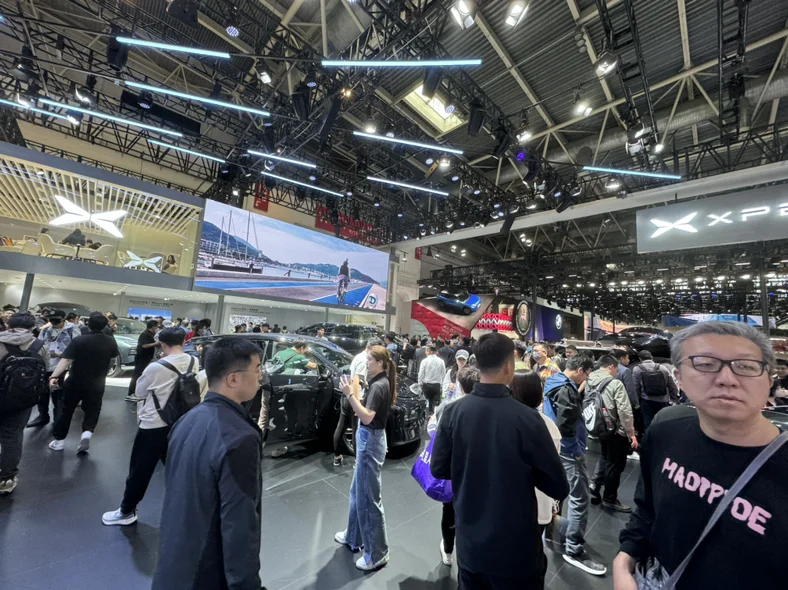 在车展同质化严重的今天、小鹏还是很有特色,现场人数络绎不绝。