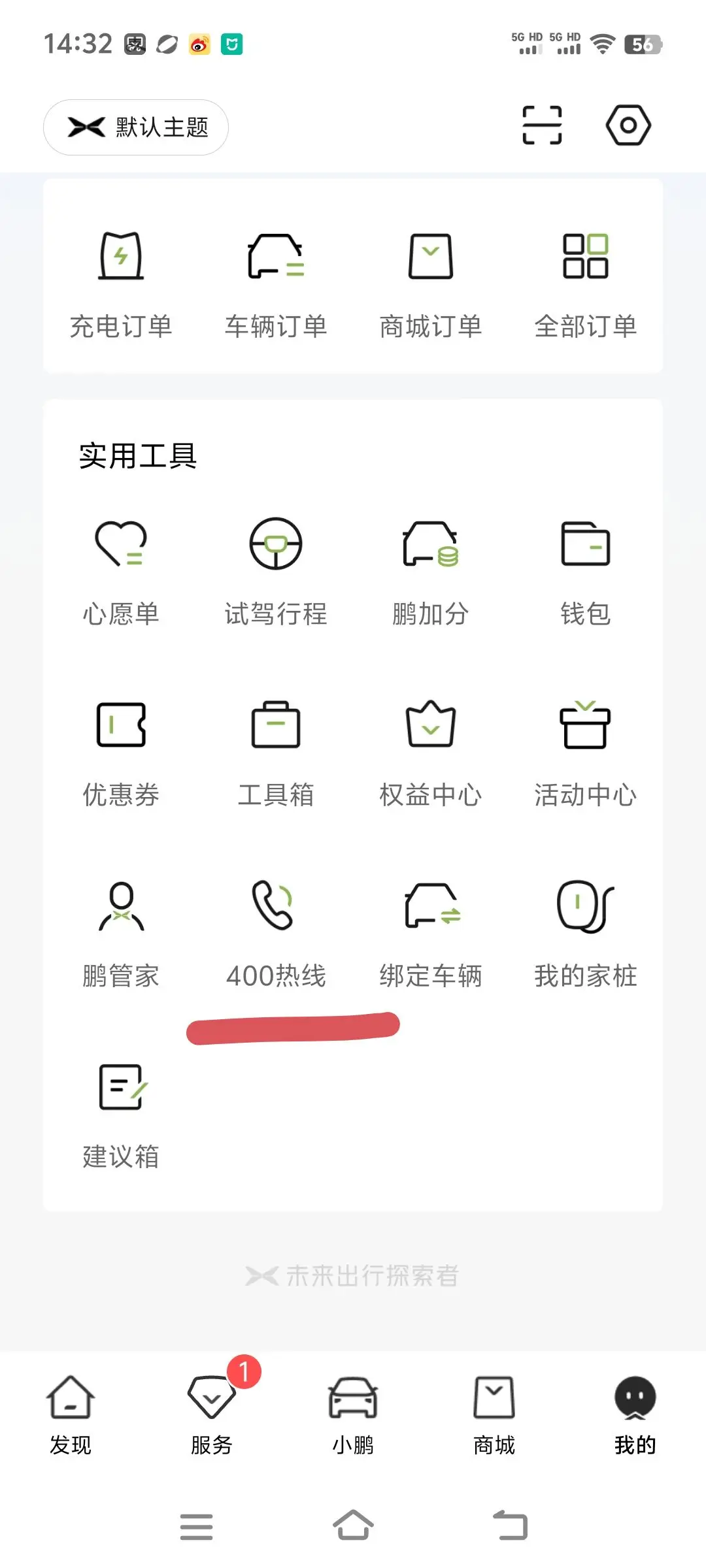 五一收假回来,我去几个驿站取完网购平台上买的东西,唯独这个奖品没有收到,我甚至都不知道快递员打过的那几个电话有没有涉及到这个奖品,因为承诺10个工作日发货,理论上没发货也是存在可能的。在存疑中,我在小鹏app上找到官方客服400电话(有两个地方可以看到400电话,如下图)。