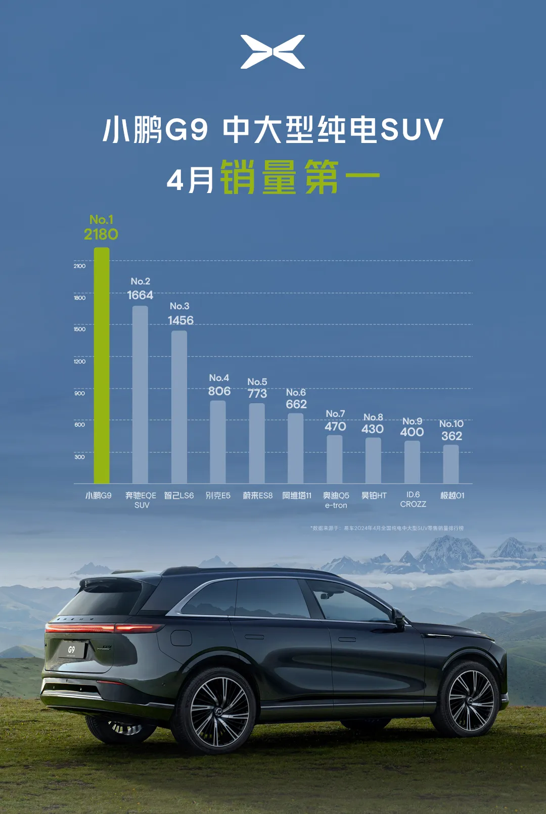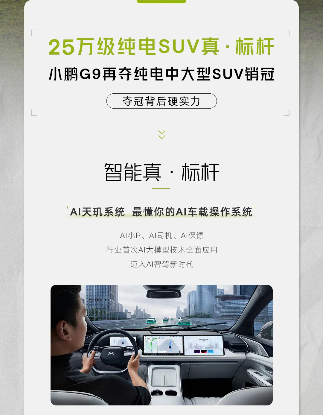 真标杆!小鹏G9再夺中大型纯电SUV销冠