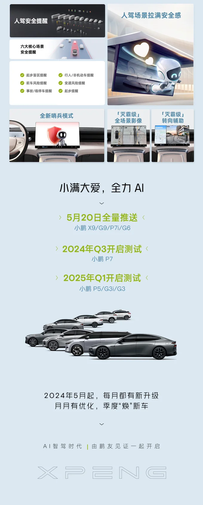 在刚过去的 “520AI DAY”小鹏发布会上了解到,咱鹏厂已经开启了智驾时代,特别是以下三点信息:①端到端大模型国内首个量产上车;②全球首发全域大语言模型;③全球首个将AI应用在智舱和智驾的操作系统:AI天玑。
