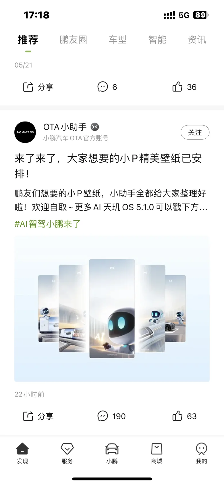 预示着AI小P再升级,而且让我最开心的事是鹏厂始终不忘老车主,我的小鹏P5也将在2025年Q1开启测试,🎉喜大普奔!真心期待!正好借着今天推荐页先前推送的AI小P精美壁纸,果断开启涂装创作,再次感谢鹏厂,让这个活动充满趣味……