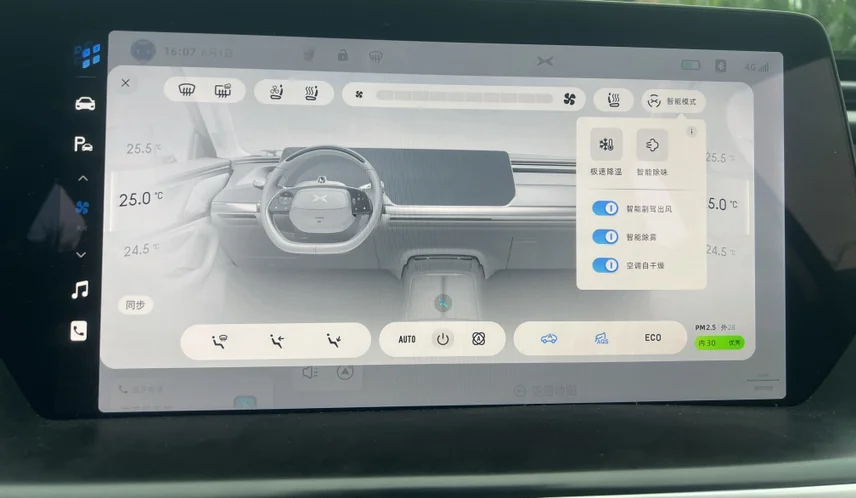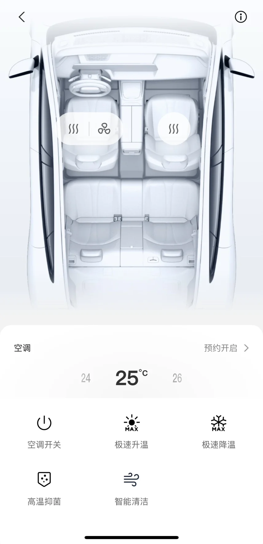 🚘 面对异味小鹏官方早已想到了应对解决方案,打开小鹏APP,点击中间的小鹏,进入智能空调界面,有多种功能选择: