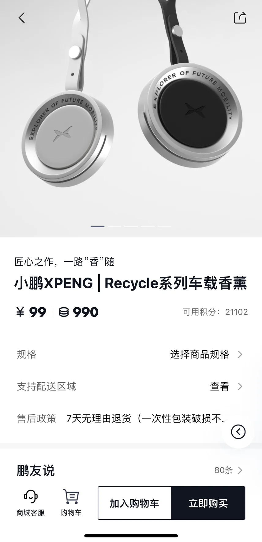 😍除此之前,小鹏商城还可以购买车载香薰,不仅仅可以遮盖车内的异味,香薰还可以带来舒缓身心的效果,增加驾驶过程的愉悦感,多种款式味道任君选择