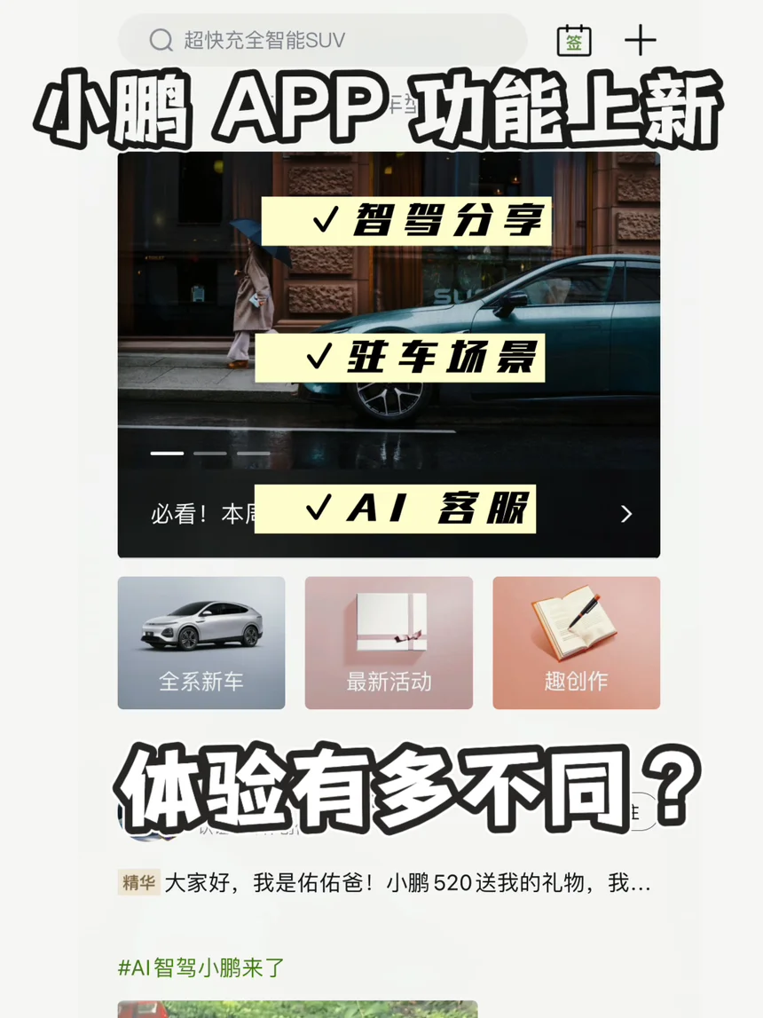 小鹏 APP 的功能最近优化和新增还挺多,可能大家都没注意到,比如智驾页面的分享,比如车位号的记录和停车照片拍摄,比如尝试 AI 客服卖车。来和大家分享下: