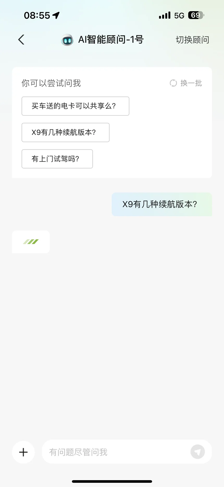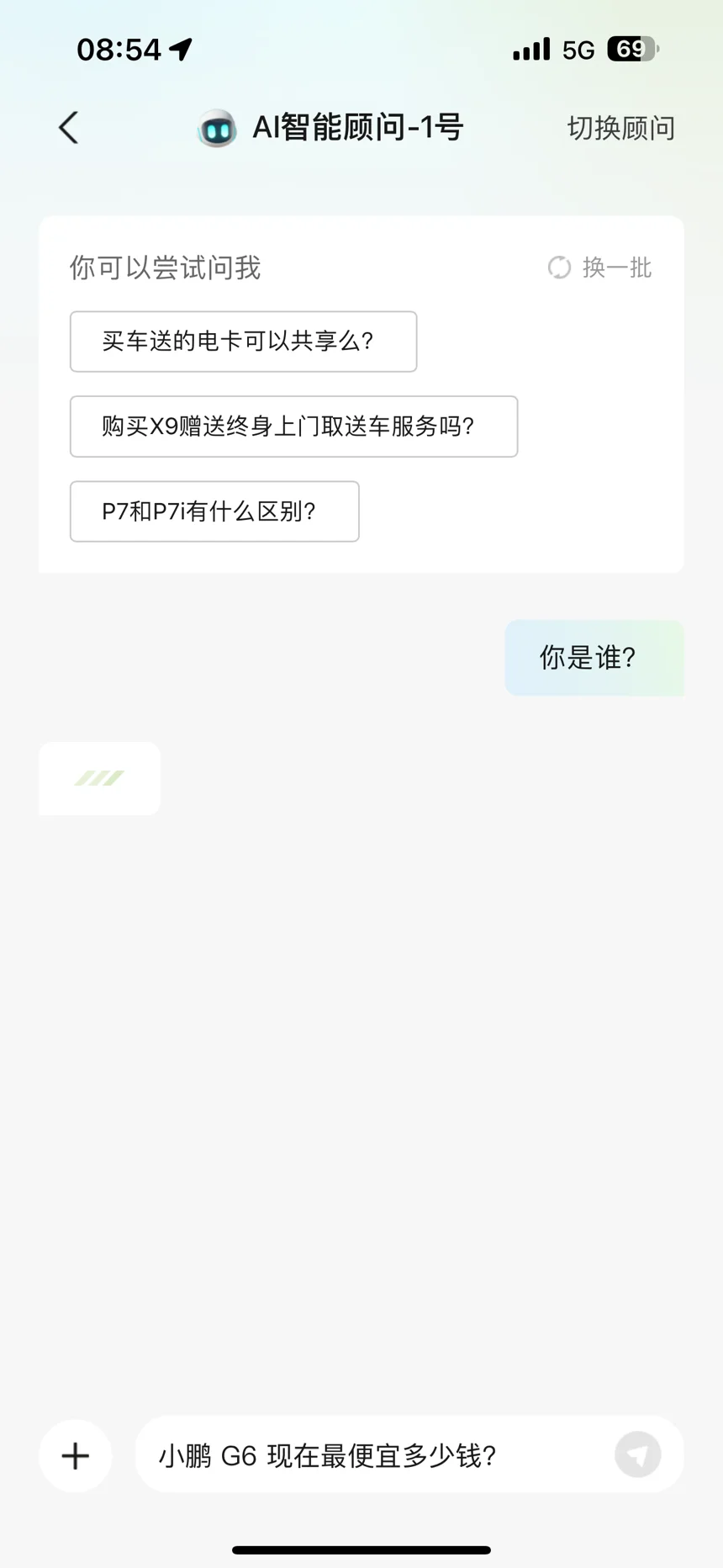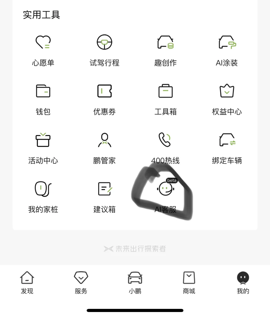 4.AI 客服。在“我的-实用工具”栏目,开始测试 AI 客服,从体验中看起来是个卖车功能为主的客服,但是放在这个位置感觉过于靠里了。更重要的是,目前为止,这个客服还是一问三不知,可以看最后三张图。