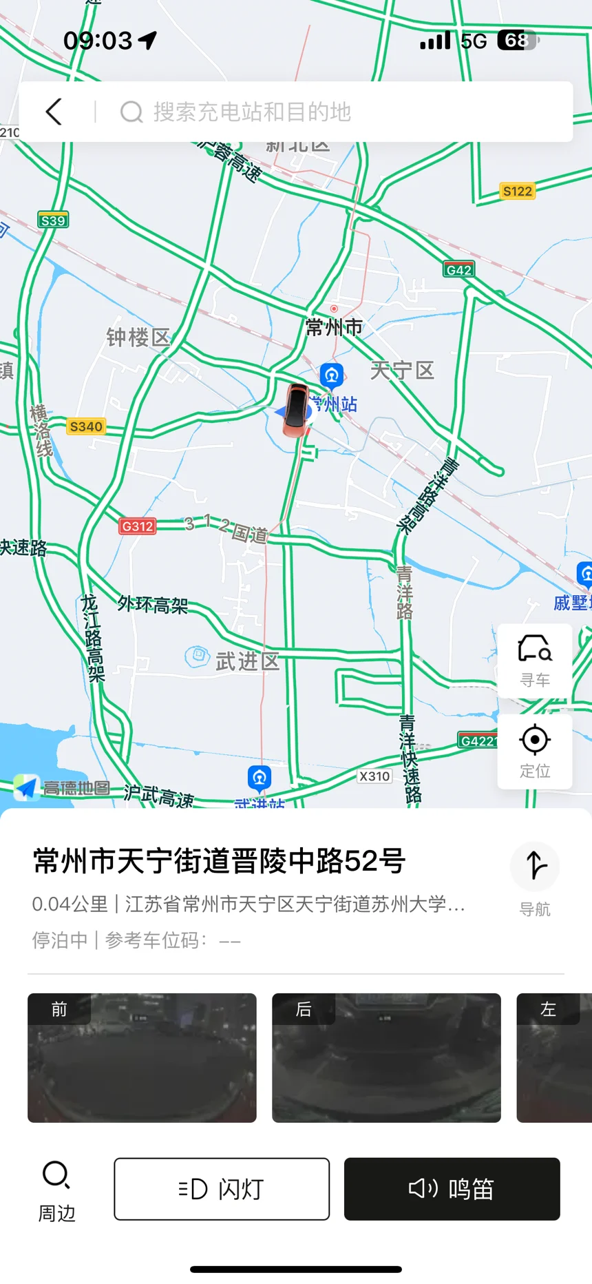 3.驻车位置。呼唤已久的驻车拍照功能终于来了,当车辆泊车后,可以自动拍摄周边四个角度的照片,并记录时间甚至是车位号,功能里还可以形成俯视图,但实际体验中难得遇到。还可以查询周边的充电环境和闪灯,鸣笛,好评。
