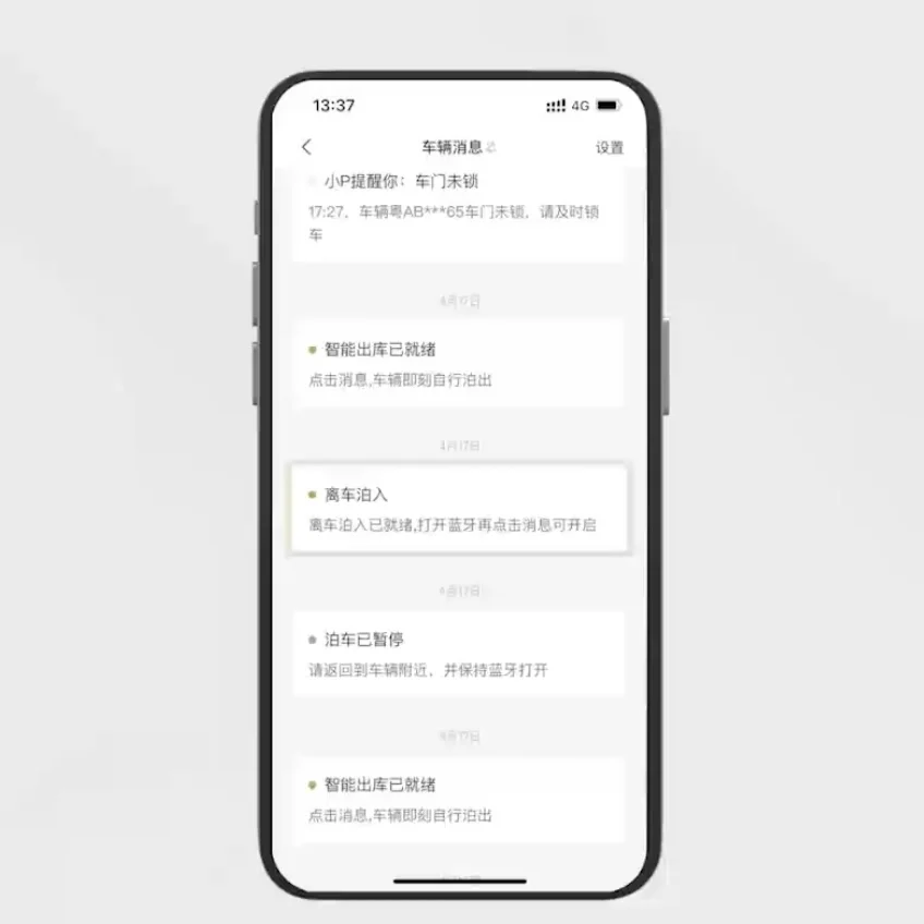 3. 虽然在最新的软件版本(XOS5.1.5)中,离车泊入功能不要求蓝牙连接了,但是为了安全起见我们还是建议鹏友们在泊车开始后保持观察车辆周边环境,等待车辆下电锁车后再离场。