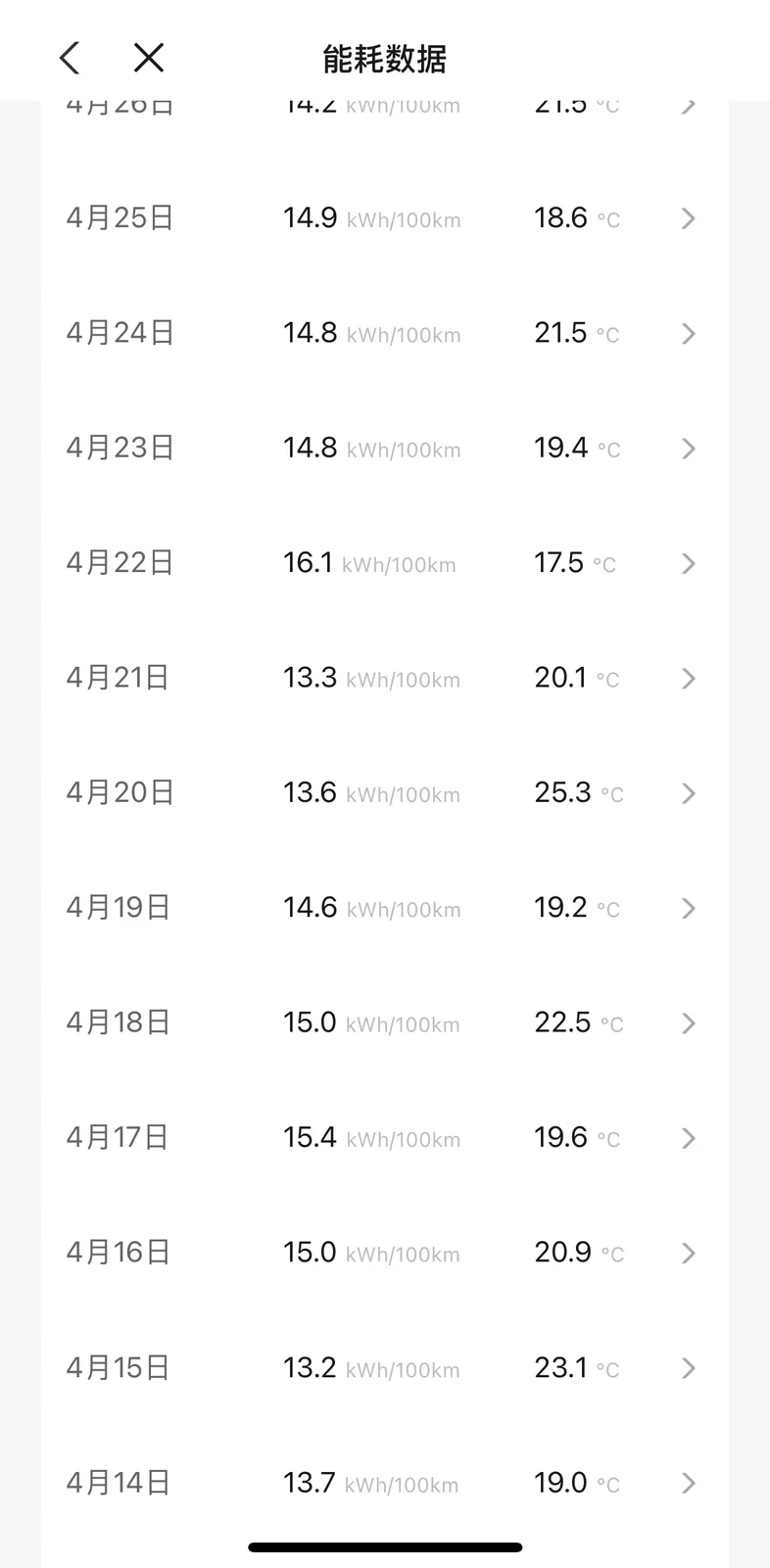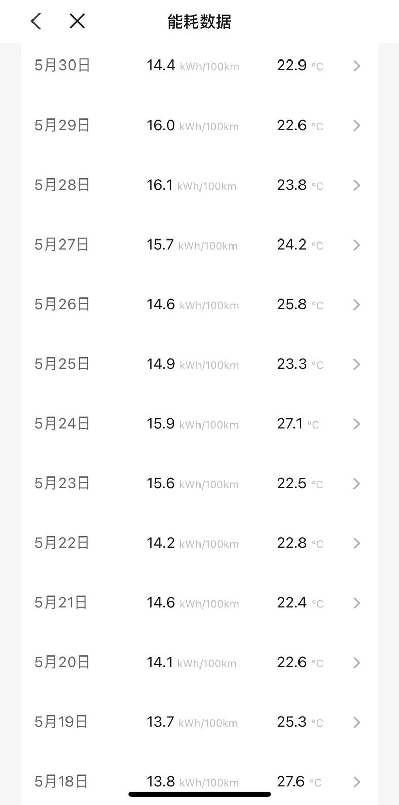 四-五月 🗓 平均气温🌡20-25度上下,天气基本都为以晴朗为主🌤为主,能耗🔋13-15 kWh/100km,脚法🦶:起步脚法较为平缓,急加速较少,急刹极少,驾驶路况:城区早晚高峰拥堵路段为主,偶尔内环快速路。