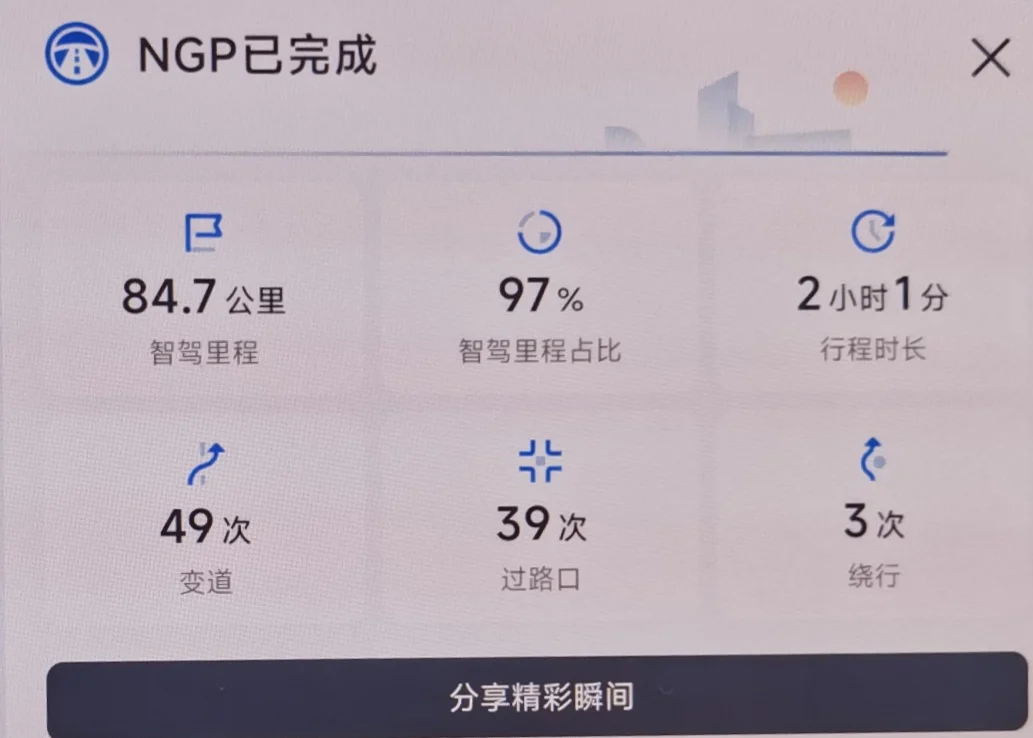 体验下来,感觉除了无限外,ngp基础能力总体表现较之上个版本提升巨大,尤其突出的是绕行、变道的时机把握,小路、施工路段的通行能力,调头,环岛也有了较高的起点。