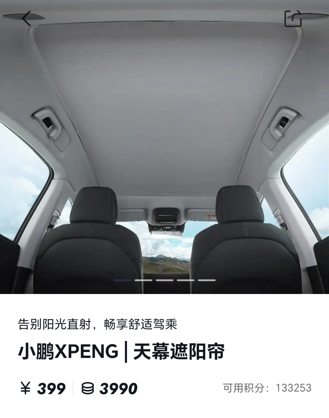 我安装的遮阳帘是小鹏官方的遮阳帘,这样可以和车进行完美的适配,的第三方的也有很多,但我觉得还是官方的最靠谱,价格是399元,有活动的话可以优惠点,入手299元。
