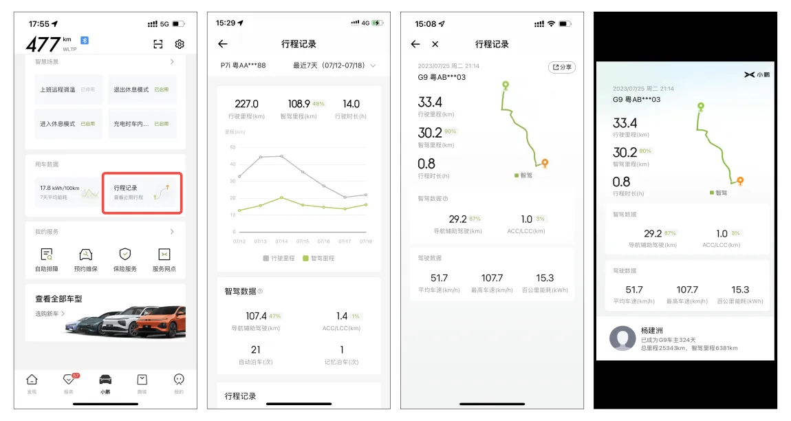 1.小鹏汽车App车控页 - 用车数据 - 行程记录