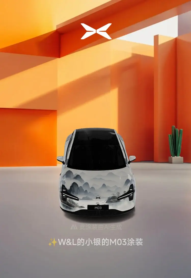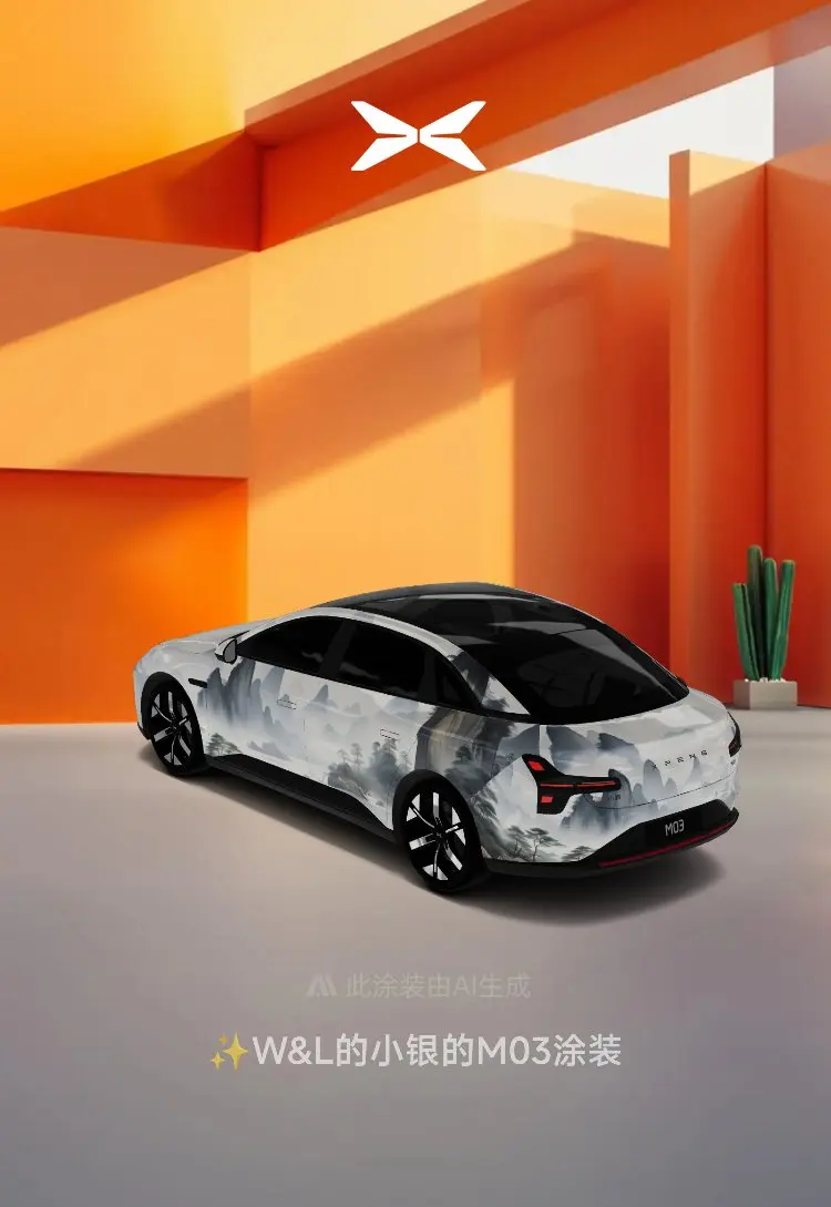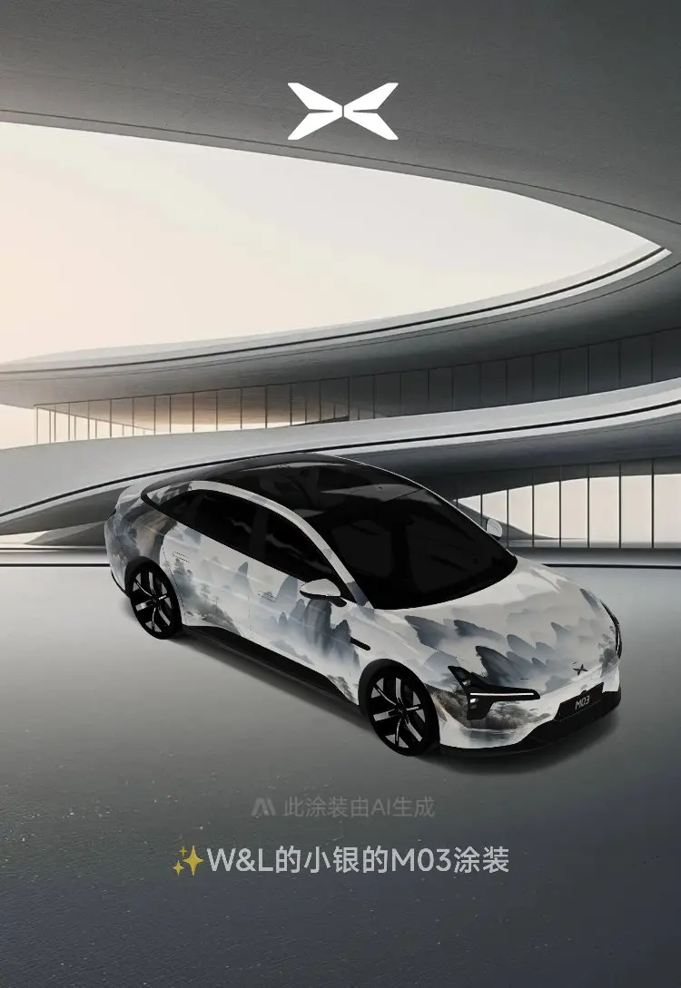 回家后我还假设为小鹏莫娜设计了几款靓丽的皮肤。主题是中国风山水与小鹏莫娜神秘优雅的外观高度契合。