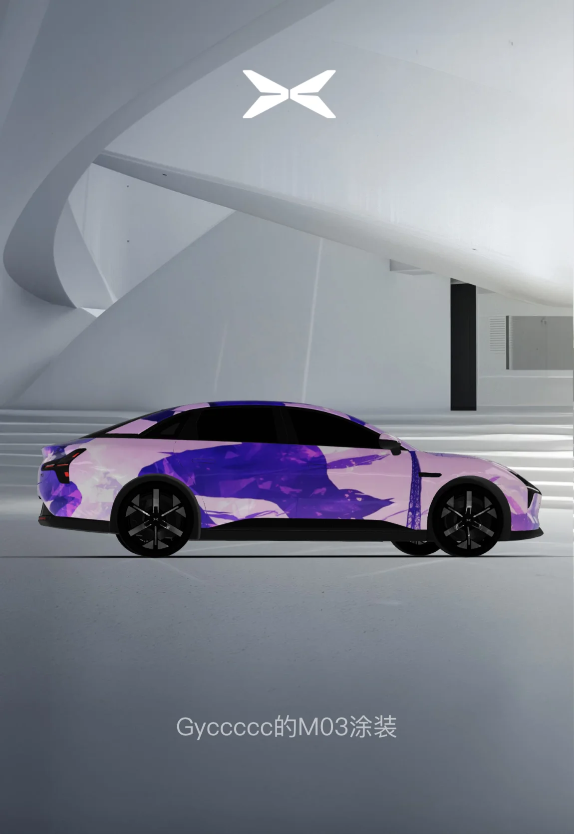 在这个设计中,我们将巴黎奥运会的紫色作为小鹏MONA M03车身的核心色彩,结合深浅不一的紫色渐变和现代感十足的图案,展现了巴黎的时尚与文化底蕴。
