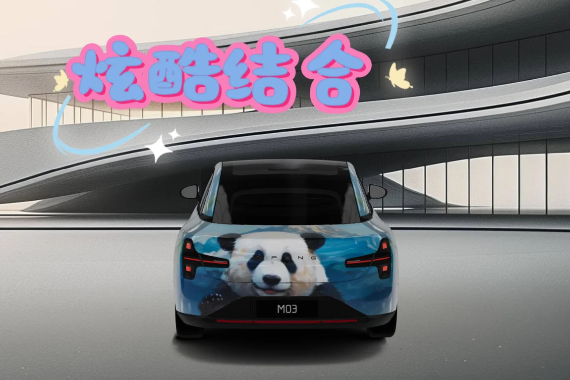 设计中的细节处理极具巧思,从车身的曲线到装饰的细节,每一处都透露出对熊猫形象的尊重与再现。车身的设计不仅展现了熊猫的可爱与沉稳,还通过现代的设计手法,将自然与都市生活巧妙结合。开着这款熊猫主题的小鹏MONA M03,无论是在城市中穿梭,还是在自然景区旅行,都仿佛带着一份对自然的敬畏与珍惜,展现了年轻人对环境保护和生活品质的独特理解。