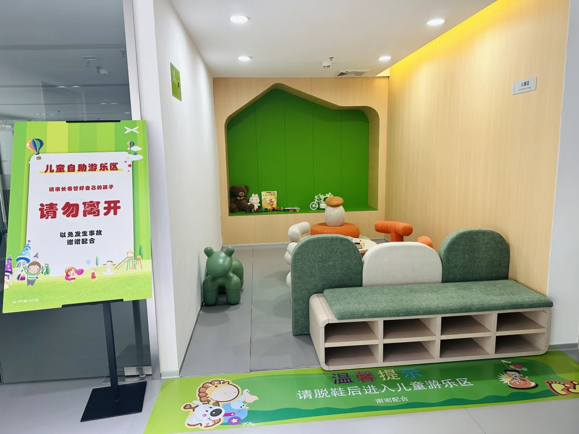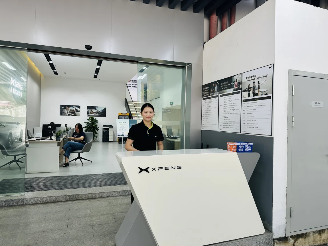 ↑ 番禺大道店是广州极少数装修如此高档的门店之一,通透的玻璃幕墙,加上一楼展厅、二楼活动室、三楼汽车及车主活动室构成,而车间则在楼背后,恰到好处地区分了销售和维修两个板块。这家门店也是今年2024年元宵节才开的,也是小鹏汽车本年度重点门店之一。