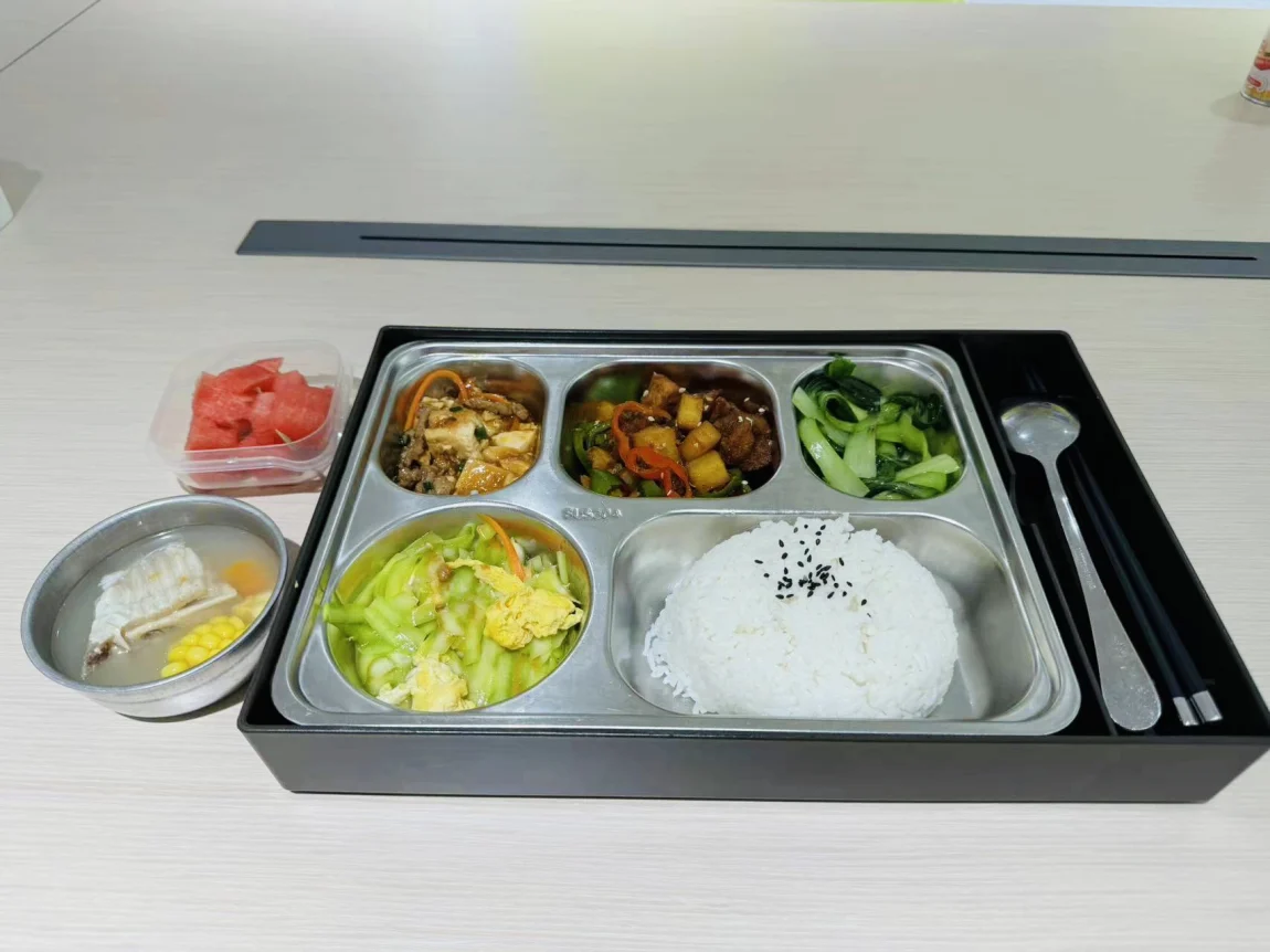 ↑ 午饭时间,他们还精心准备了营养套餐,竟然还带水果,这还不够 ↓