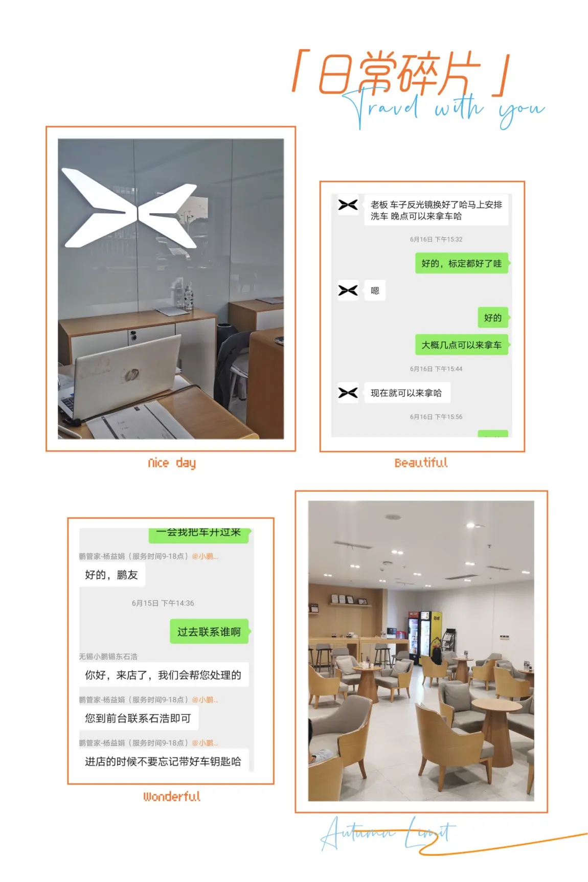 我前后体验过两次小鹏售后服务,一次是扎胎,寻求了24小时救援服务,一次是前文所提及的维修损坏的后视镜,每次都能让我感受到小鹏的暖心售后服务,热心靠前的服务意识,让售后事项的处理解决变得简易高效,真是不负热爱。