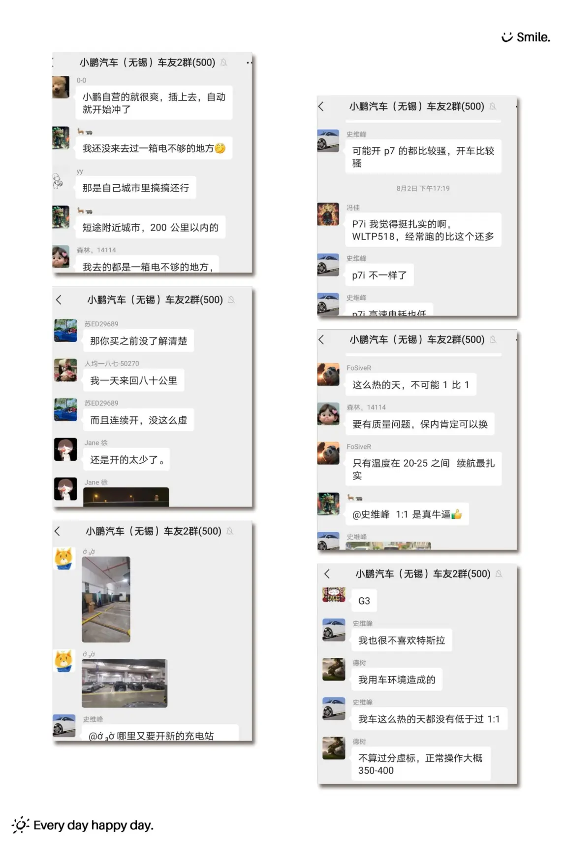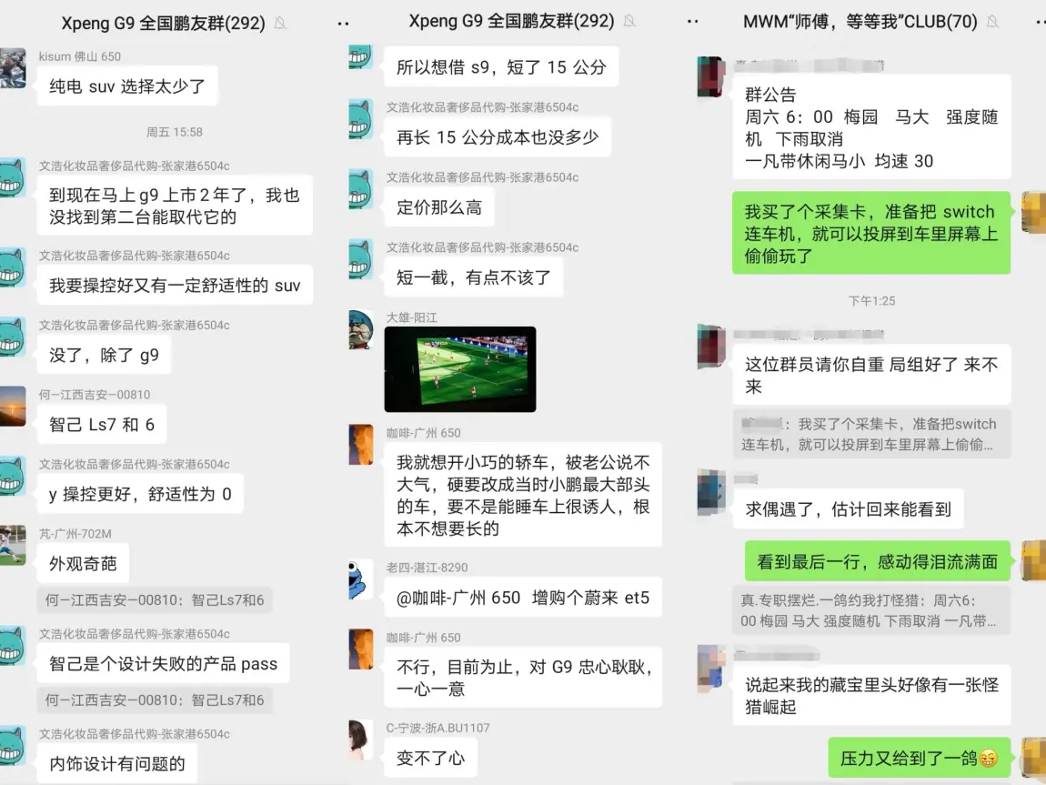 提车后,我就急不可耐地寻找着组织,想加入鹏友们的队伍,于是就加入了一个本地小鹏车友群,然后又接二连三加入了各种全国G9车友群、充电群……在各个群里我们谈论着用车技巧,分享着使用心得,谈天论地,畅所欲言,开心万分。