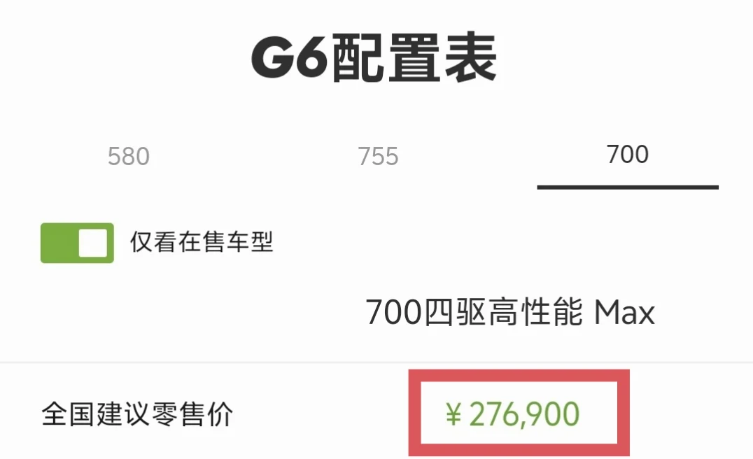 G6有3个型号6个配置,价格在19.9—27.69万之间,同型号不同配置相差2万左右(Plus版是后出的)。