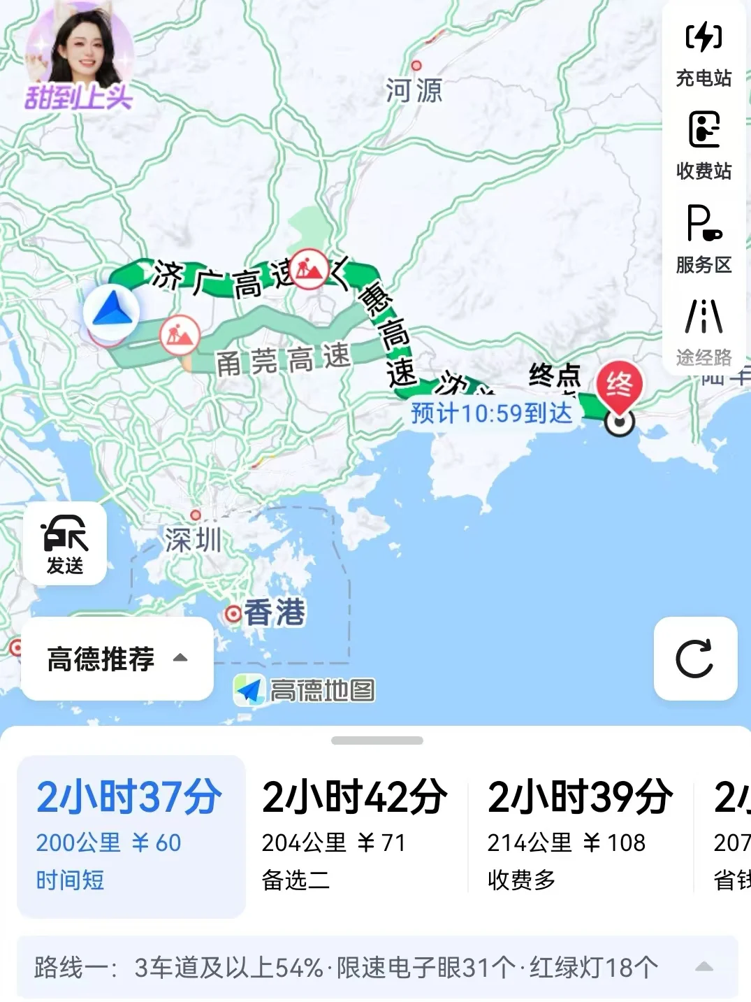经过使用高德导航查看,东莞距离汕尾是200多km的路程,来回是500km不到,按照常理我的鸡柳充满至95%后续航是584km,来回是完全够用的,但是为了以防万一,还是计划去时提前给鸡柳加满电,并在回来的时候再补满一次电。