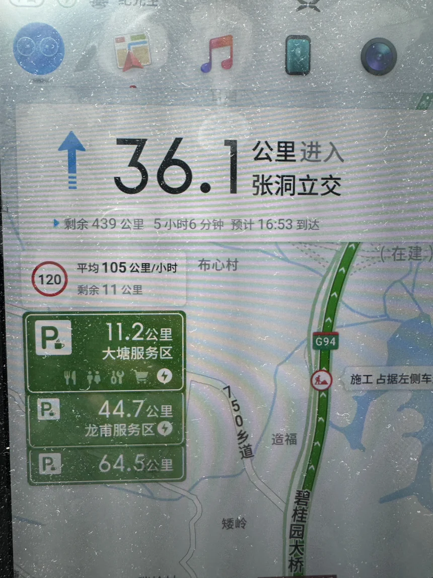 第一次开到龙浦服务区跑了 248 KM, 电量剩余 180KM 就去充电了,主要也是坐久了加上车上有小孩想下来活动活动。下来上了厕所逛了逛商店电还没充满就拔枪走人了,反正后面的服务区随便去哪个都可以充电。第二次是直接开到了贺州服务区,同样下来带小孩上厕所还吃了点服务区难吃的饭就走人了,然后就是直接干到了目的地桂林!
