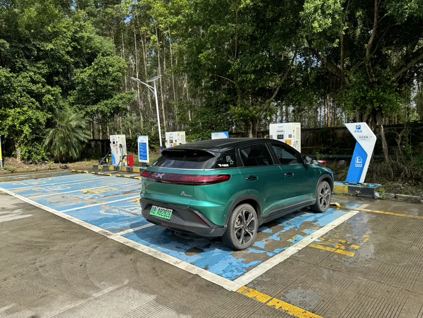 回去充了三次电,主要原因是第二次到广东地界一个服务区的快充桩电流竟然小的只有 30 和 60。一个小时充了 100 多 KM 简直是垃圾中的战斗机!不想等了只能拔枪走人去下一个服务区又充了 20 分钟!