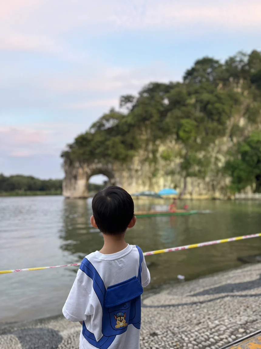 由于到了桂林已经是下午六点左右了,直接开到象鼻山景区,带小朋友看了看象鼻子山,玩了玩呲水枪。又去附近找了一家排名第一的馆子吃了晚饭,说实在的味道很一般感觉评分都是刷的,除了价格便宜其他没什么优点!