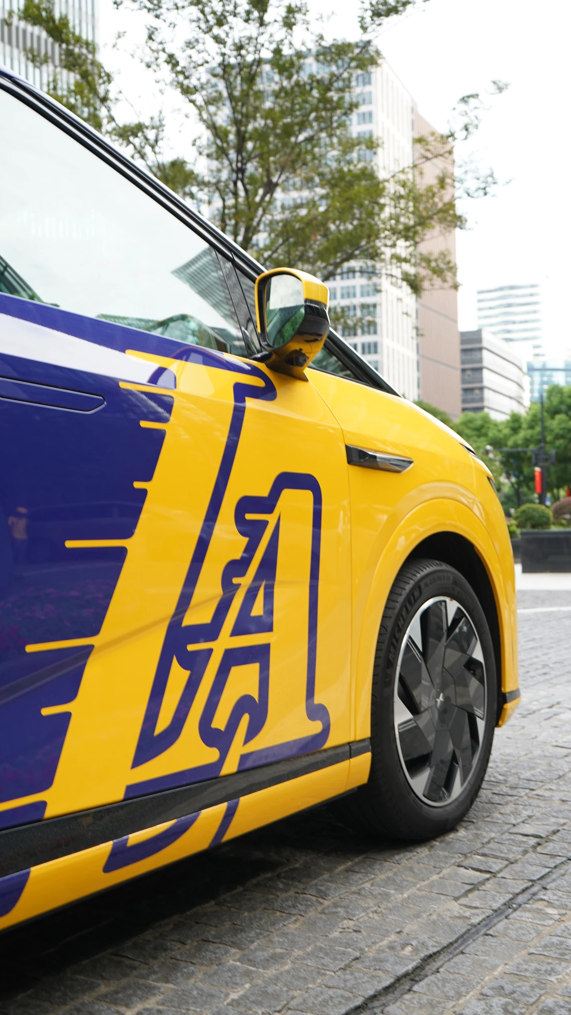 本来昨天就翘班过来探店打卡最新的小鹏X9&NBA湖人冠军涂装,由于这款涂装车不是展车,是试驾车,停在地库,加上天色已晚外面下着雨,不太好拍照片,没办法拍素材,所以今天又翘班来打卡小鹏上海南京西路旗舰店,加上路边也不能随便停车,跟门店试驾小哥找了一下午拍摄的地方,最后跟保安打了声招呼,索性把车停在了上海静安洲际酒店的大堂门口,可谓一波三折~不得不说,这块涂装真是拉风,在短短的十几分钟拍摄时间里不断有人过来看,作为一个詹姆斯和科比的湖人球迷,把自己的球队涂装在自己喜欢的车上是一件非常酷的事。话不多说,直接上原图先欣赏一波!