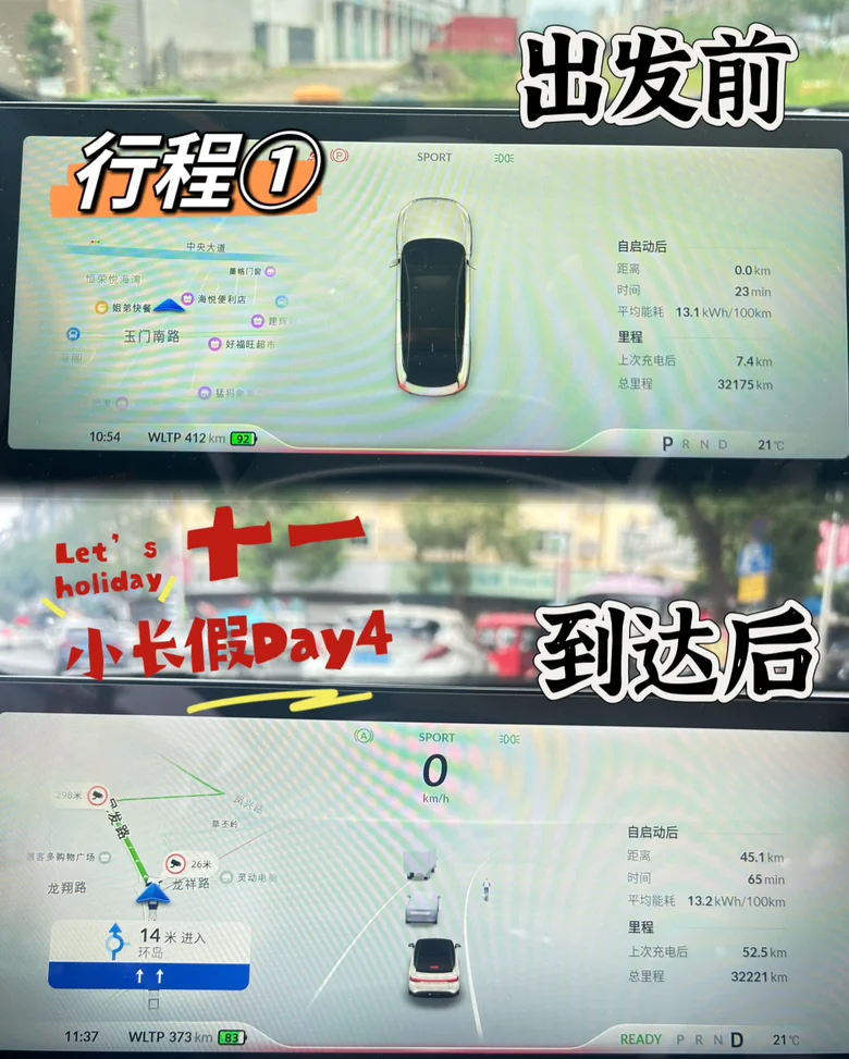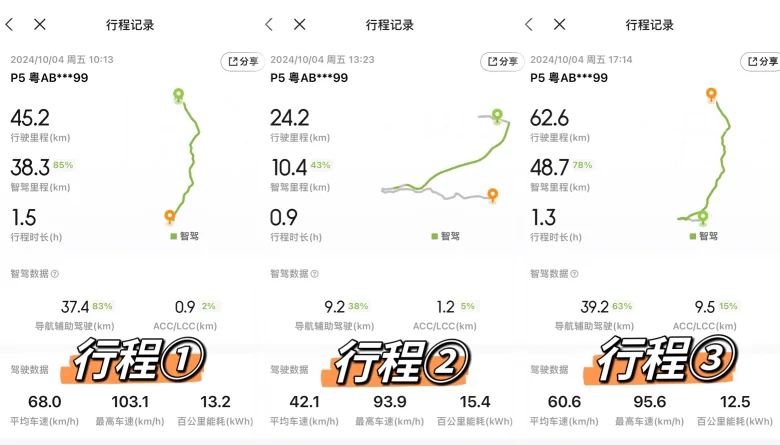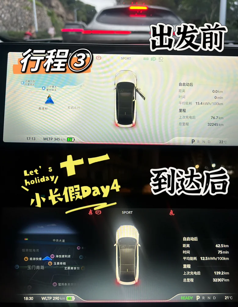 关注我的粉丝鹏友们一定知道,这之前我也有过完整的续航测试(wltp标准),这里就不展开赘述!结合行程①、②、③进行分析,具体如下: