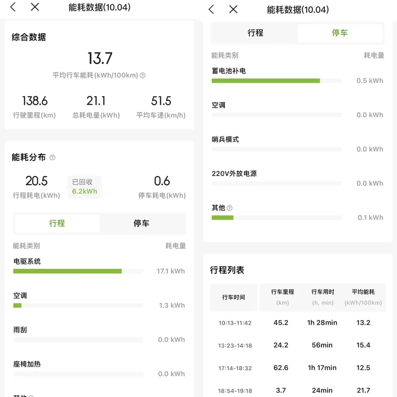 受台风影响,🌧️雨天都占据了近两日假期,虽然秋高气爽,但是我的胖虎能耗在10月4日这一天平均百公里也达到了13.7kwh。不仅如此在小鹏汽车APP能耗数据页面都能清晰查看各项能耗消耗类别,而且在能耗分布上,最需要夸夸的就是鹏厂的三电技术,还能电能回收♻️6.2kwh,真的好酷!