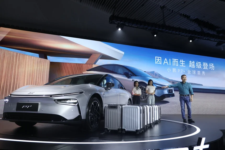 全新车系小鹏P7+在今日在深圳进行全球首秀,惊艳四方,智趣登场