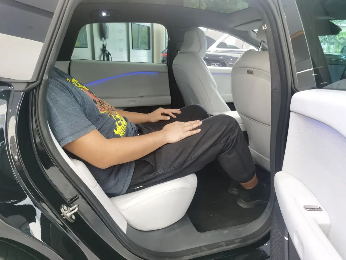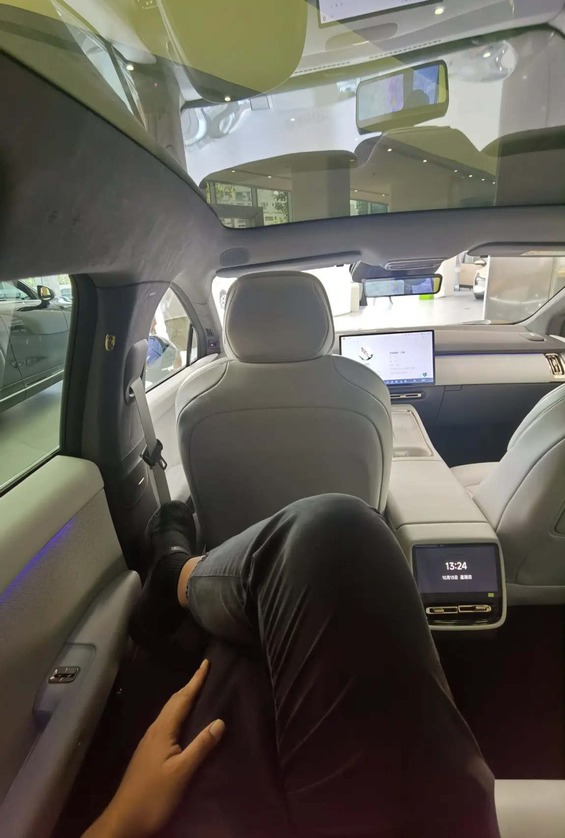 再看看后排,这空间简直绝了,我的大长腿轻松翘起二郎腿。