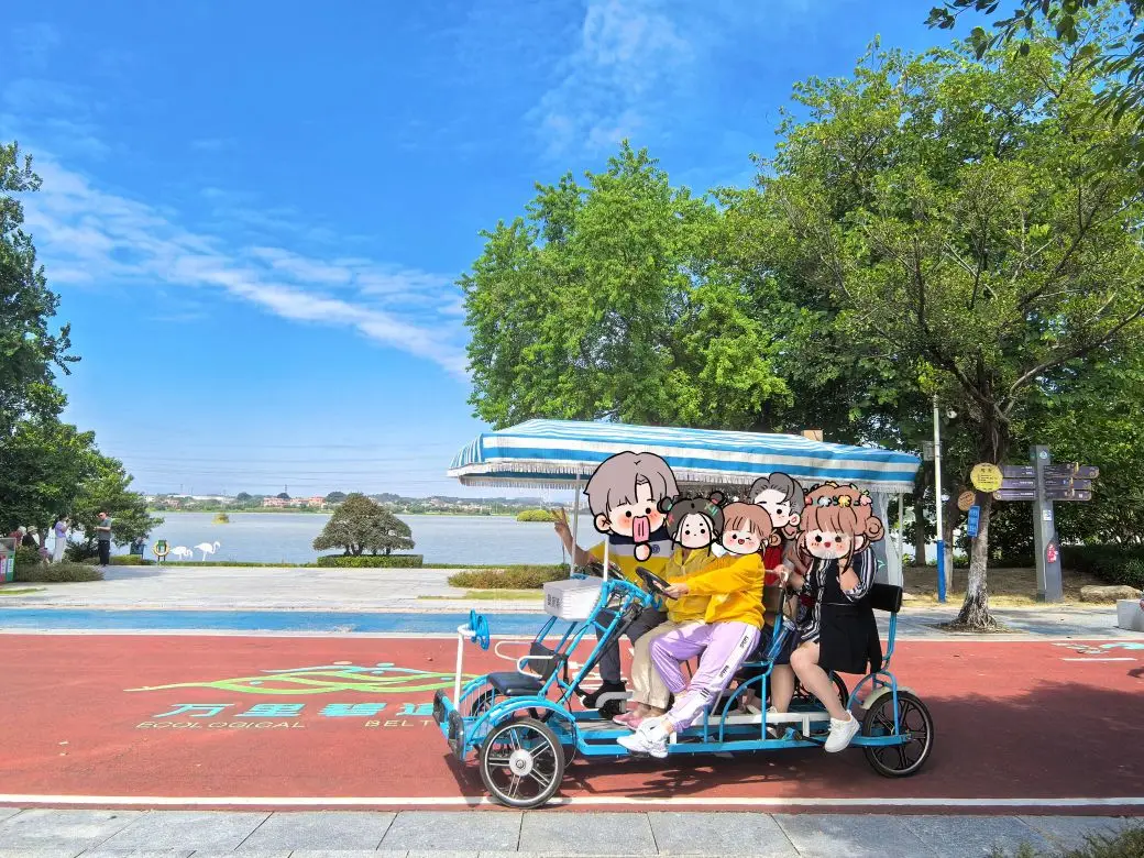 📸后记:大自然🧚🏻里骑着多人合家欢单车环游美丽湿地🌈,回到大学校园感怀美好记忆🎓,和久别重逢的老师叙叙旧💍,远离城市的喧嚣🌺,品尝乡村生活的味道🥩。这趟旅程充实而有趣,有兴趣的鹏友们可以考虑下次假期带家人们来这里游玩哦。☀🍻