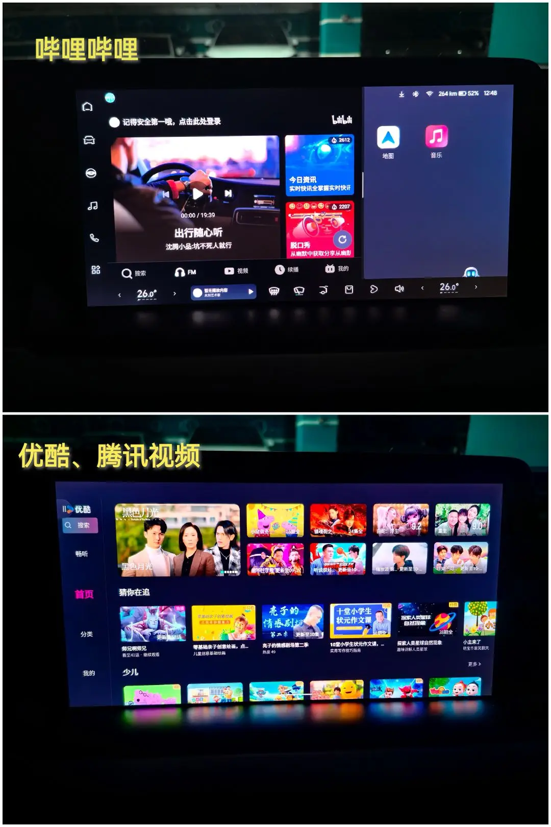 ❷ 分屏模式。喜欢边开车边看视屏的有福了,不过目前测试哔哩哔哩、优酷和腾讯视频,发现只有哔哩哔哩可以用分屏模式,希望后期都能分屏。