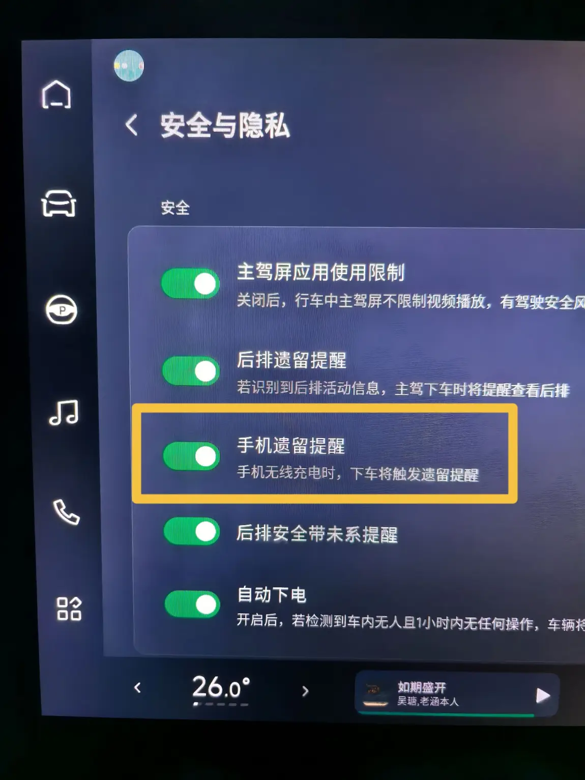 ❸ 手机遗留提醒。手机无线充电时下车,老版本的提醒是噔噔噔的警示音,不易理解含义,而新版本是小P语音提醒,更实用。
