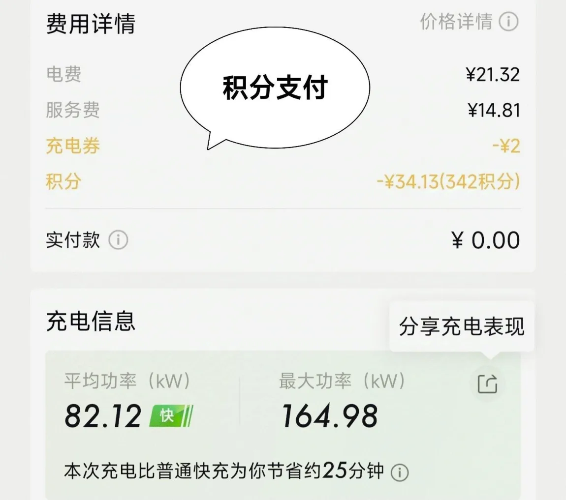 自营桩积分充电:小鹏自营桩可以用积分直接抵扣电费,社区经常会有各类活动,有时间多参与互动就能获得较为丰厚的积分奖励,积分用来充电,在某种意义上实现了“开车不花钱”。