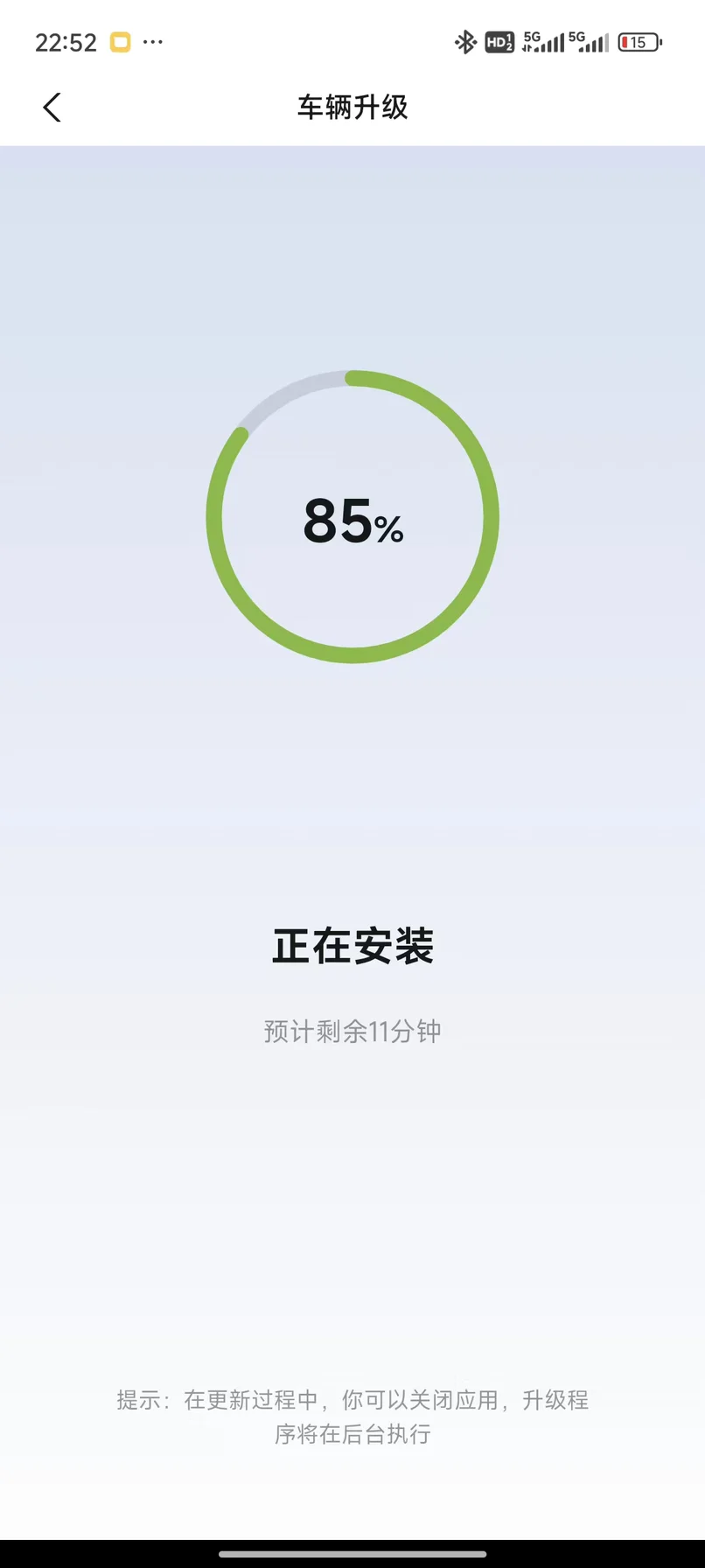 一切检测完成后,系统开始正式进入升级阶段。需要注意的是,升级期间车辆将无法使用,因此建议大家选择一个不影响日常行驶的时段,例如晚上进行升级。我选择在夜间进行升级,避免白天的用车需求受到影响。
