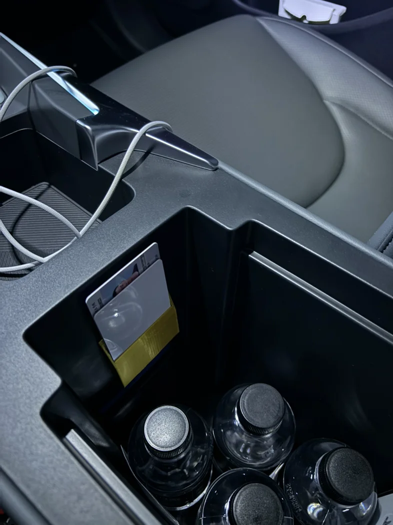 3D打印自制的卡片夹,放扶手箱。我的充电桩的nfc钥匙是小挂件那种,太小了容易丢,我把它数据破解了自制了这个白色的ic卡用来刷桩。另外我也试了常见的nfc卡贴破解工具破解不了m03自己的nfc钥匙。