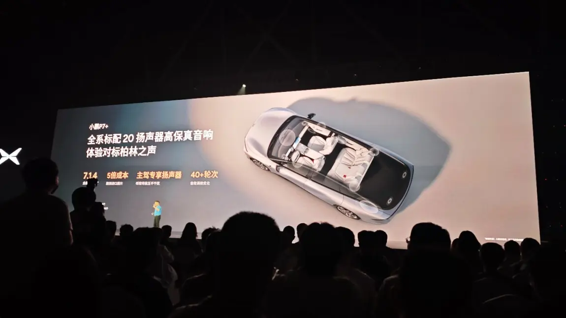 p7+有很多小细节值得被拉上大屏幕来接受大家的表扬,标配的20扬声器高保真音响在用户盲测的时候对标柏林之声,这还真不是吹牛,感兴趣的鹏友可以在之前的p7+咨询里面可以找到相关的音频,大家来分辨一下🌝,p7+上面还有星瀑式氛围灯,双环出风口和星轨扬声器,都是细节设计,星瀑式氛围灯还有起到安全提醒作用,当你遇到危险情况时候,星瀑式氛围灯可以立马以跳闪的方式来提醒你,美观与功能化兼得。