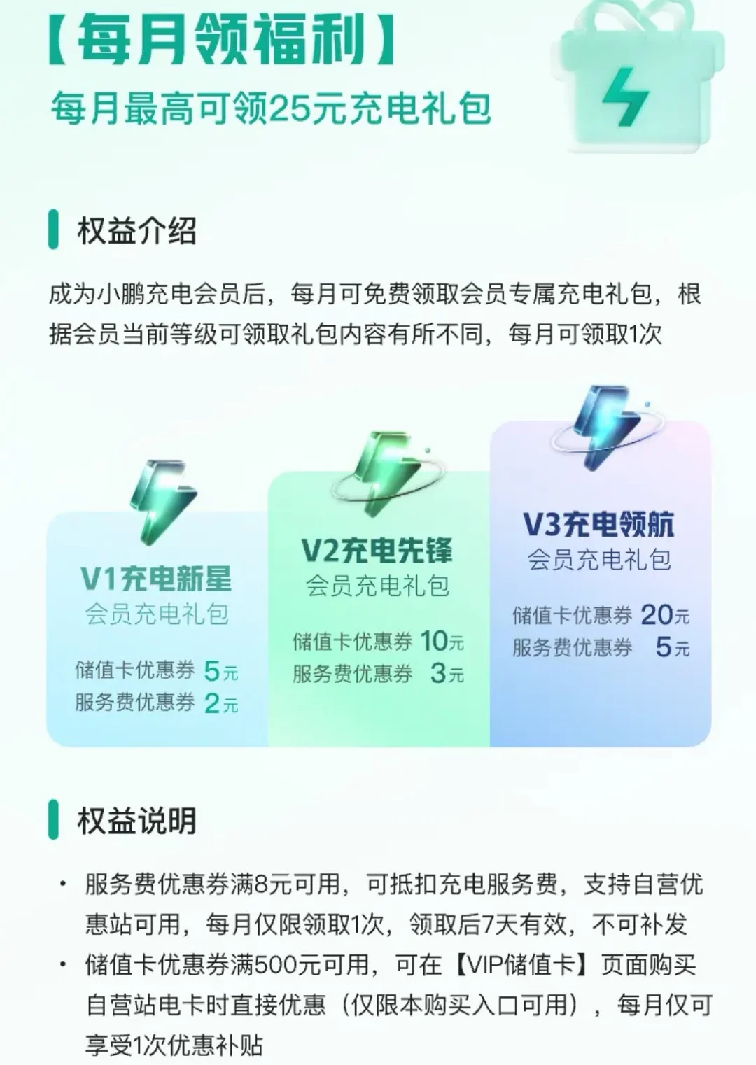 在新的VIP功能中,增加了每月领福利的优惠政策,这个比以往的优惠力度更大,从V1到V3级别,每个月都可以领取7-25元不等的优惠券,非常的划算了,这里给小鹏点一个大大的赞,对于我这种穷苦大众来说,太贴心了👍。