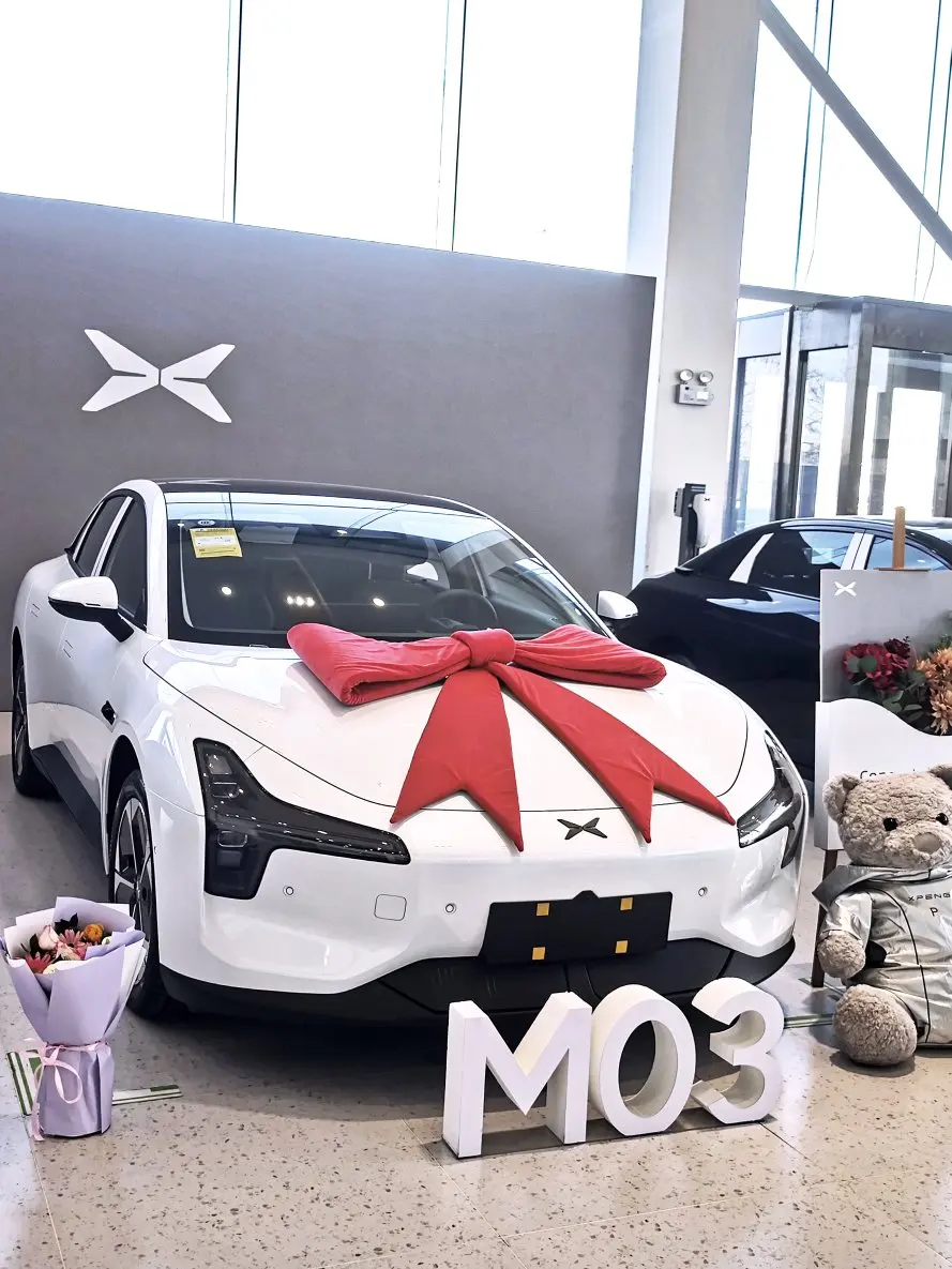 交付中心会准备一束鲜花+大蝴蝶结+公仔,有充足的时间拍照记录,提车结束还可以到小鹏食堂免费吃午饭