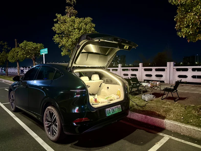 📱回看手机相册里拍摄的画面,热气蒸腾的锅具,回想远处货轮鸣着低沉的汽笛驶过,🥰这种不用明火的环保露营体验,或许就是电车特有的户外乐趣,回程路上我已经在规划,下次要带上电烤盘来一次江边铁板烧。